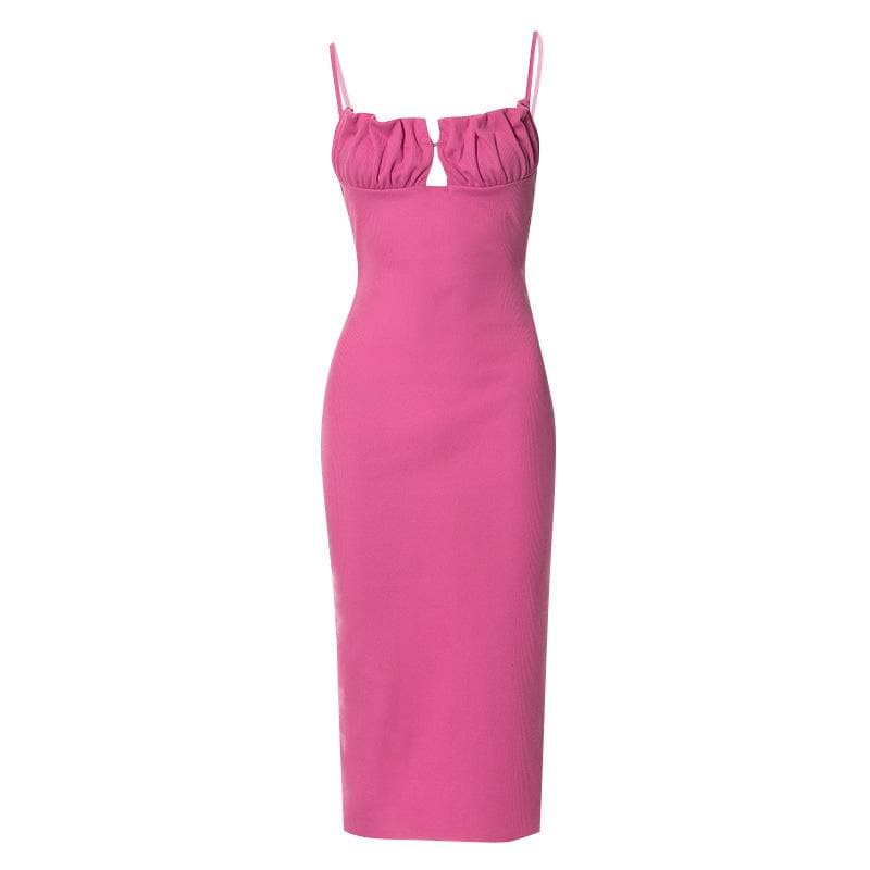 Sleeveless solid ruched ribbed backless cami dress